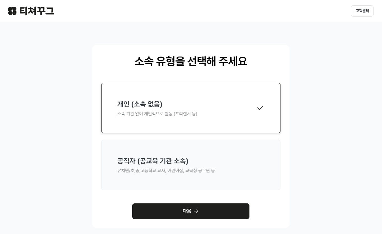 마지막으로, 티쳐꾸그 서비스 이용을 위한 계약을 체결해 주세요.