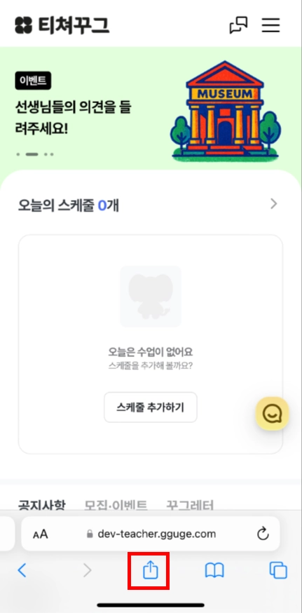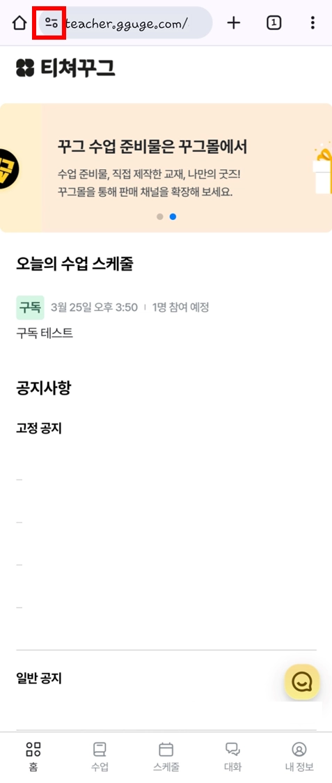 3-4. 티쳐꾸그 페이지에 접속 중인 경우
