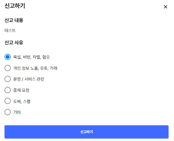 아래의 내용에는 별도로 답변하지 않으셔도 되며 원하실 경우 신고해주시면 꾸그에서 빠르게 확인하도록 하겠습니다.