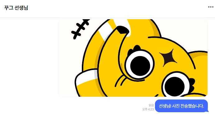 대화 상대방인 선생님께서 대화를 읽었다면 1표시가 사라지고 읽음으로 표시되어요.