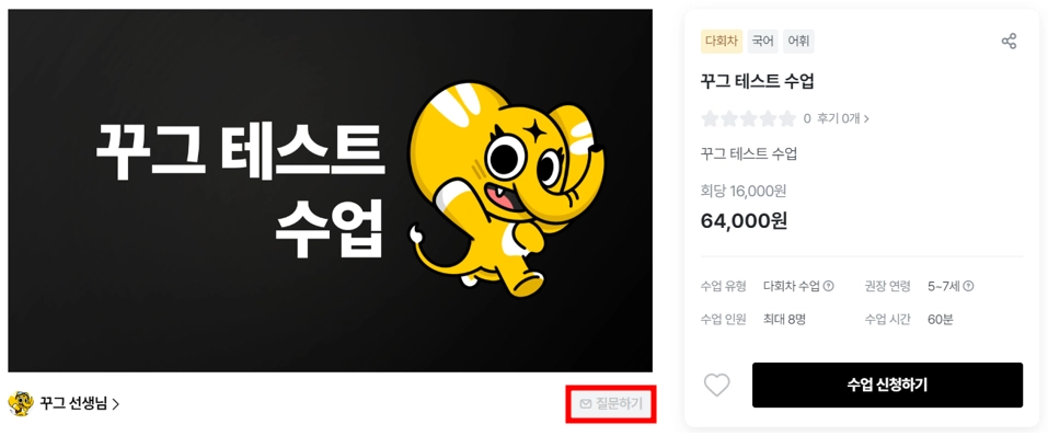 2-4. 수업을 신청하기 전 선생님께 대화를 전송하는 방법
