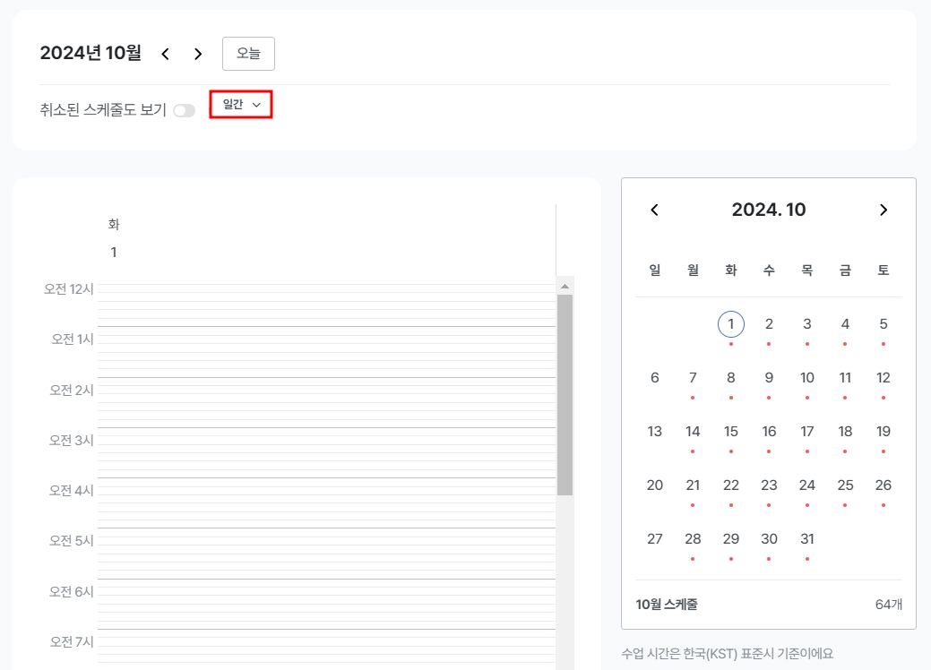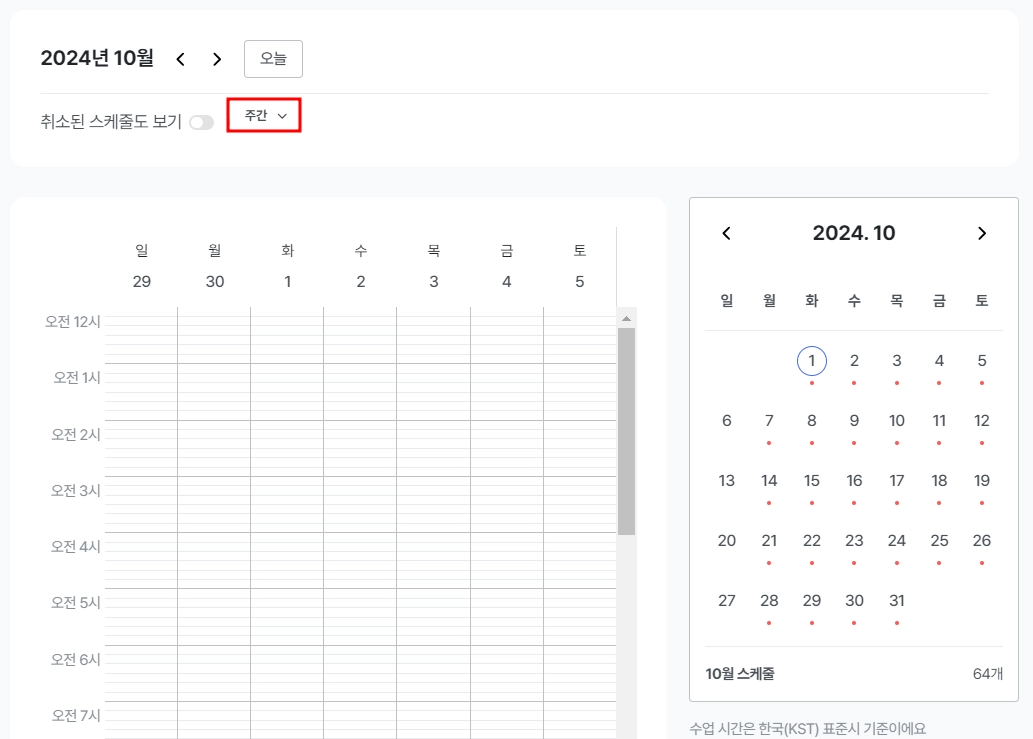 프라이빗 클래스의 스케줄 관리는 선생님께서 직접 하실 수 있습니다.