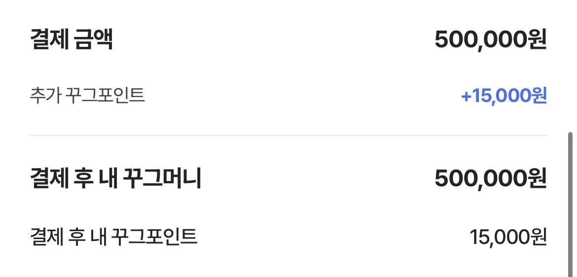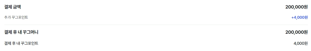 [꾸그머니 충전 페이지] 에서 결제 금액 및 추가 혜택금액을 확인해 주세요.