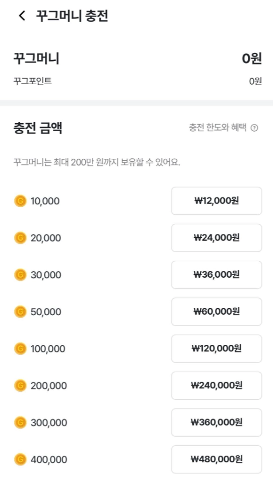 2. 꾸그머니를 충전하고 싶어요.
