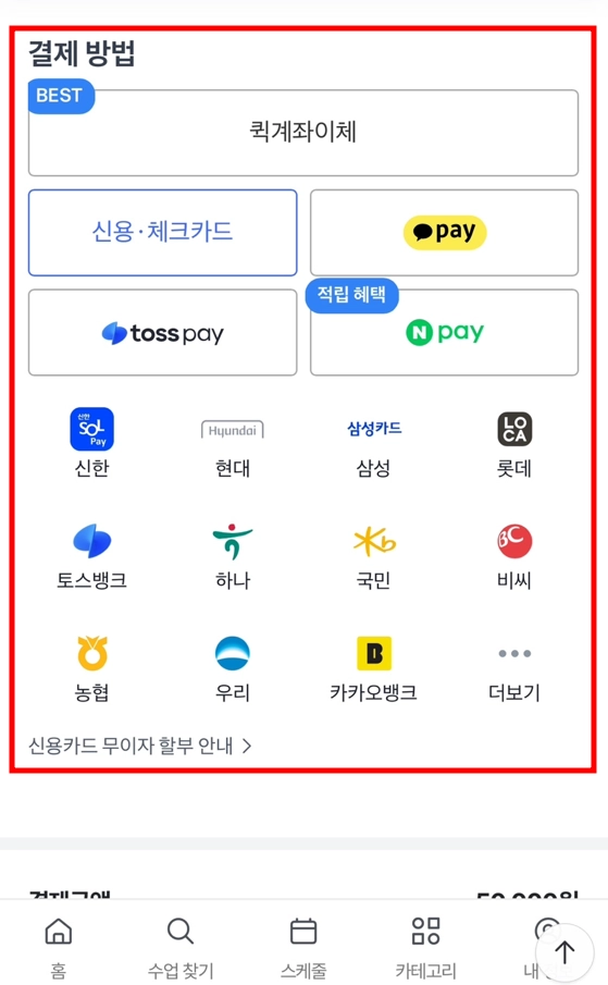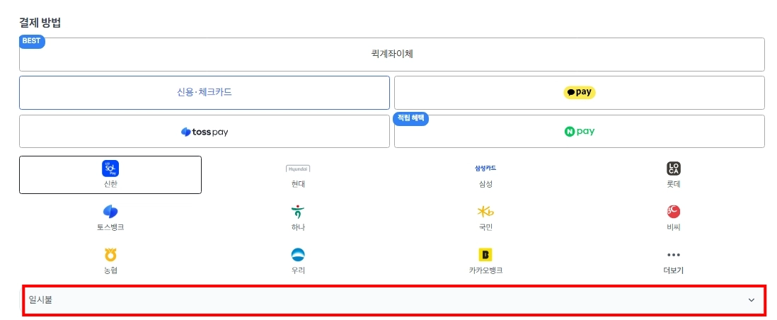 신용·체크카드 선택 시 할부 개월 수를 꼭 선택해 주세요.