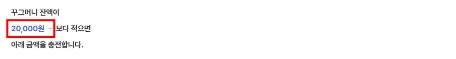 ~원보다 적으면 아래 금액을 충전합니다. 란을 클릭하여 금액 선택