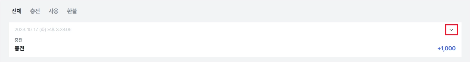 [청약철회를 진행할 결제 건 옆 ∨] 버튼을 클릭해 주세요.