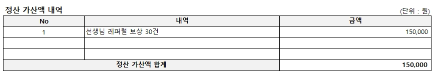 정산 내역은 받아가시는 장려금이 0원이 아닌 경우에만 월별 정산서에 표기됩니다.